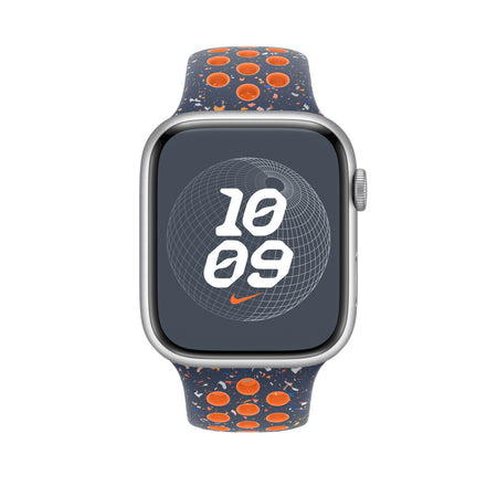 Made with compression-moulded perforations for breathability, the Nike Sport Band is durable and strong, yet surprisingly soft. It features colourful flakes that create a randomised pattern, making each strap completely unique. The smooth, dense material drapes elegantly across your wrist and feels comfortable next to your skin. A new aluminium pin-and-tuck closure gives the pin a fresh matt finish.