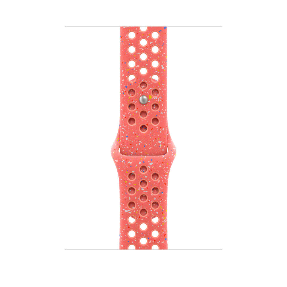 Made with compression-moulded perforations for breathability, the Nike Sport Band is durable and strong, yet surprisingly soft. It features colourful flakes that create a randomised pattern, making each strap completely unique. The smooth, dense material drapes elegantly across your wrist and feels comfortable next to your skin. A new aluminium pin-and-tuck closure gives the pin a fresh matt finish.