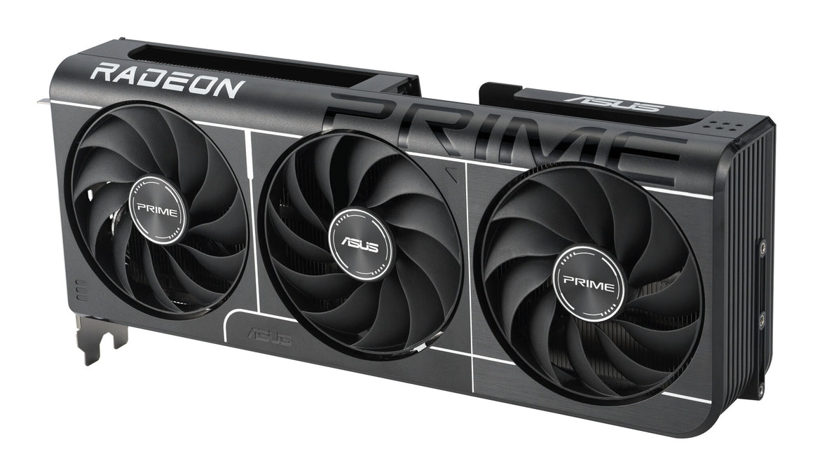 Experience Primal performance with the Prime Radeon™ RX 9060 XT graphics card featuring a compact 2.5-slot design for expansive compatibility, enhanced by a triple-fan setup for supreme cooling.