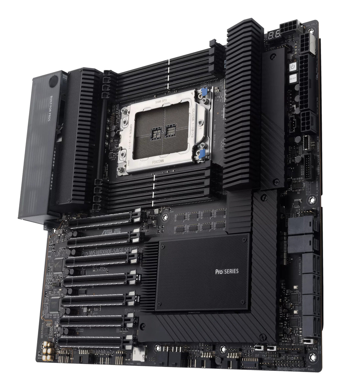 ASUS Pro WS WRX80E-SAGE SE WIFI is engineered to unleash the incredible power of the latest AMD® Ryzen® Threadripper™ Pro series processors and is a reliable foundation for professional creative workloads that benefit from multi-core CPUs, such as video editing and 3D rendering. Additionally, seven PCIe 4.0 slots with SafeSlot fortification deliver exceptional performance with the latest high-power graphics cards.