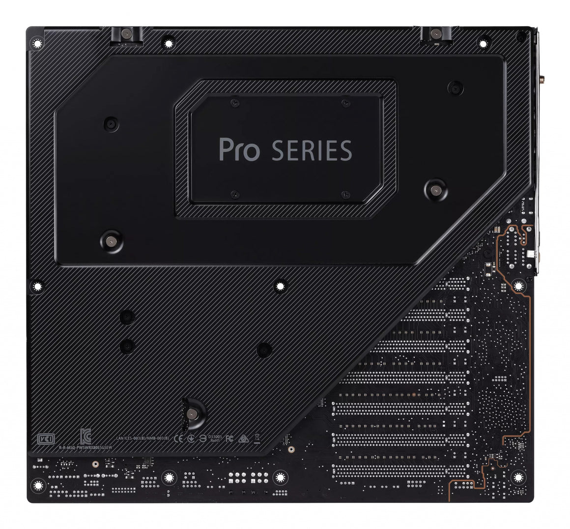 With metallic black aluminum extrusions, stainless steel black mesh with highlighted details, and a transparent smoky gray I/O cover, Pro WS WRX80E-SAGE SE WIFI presents a professional, low-profile look for content creators.