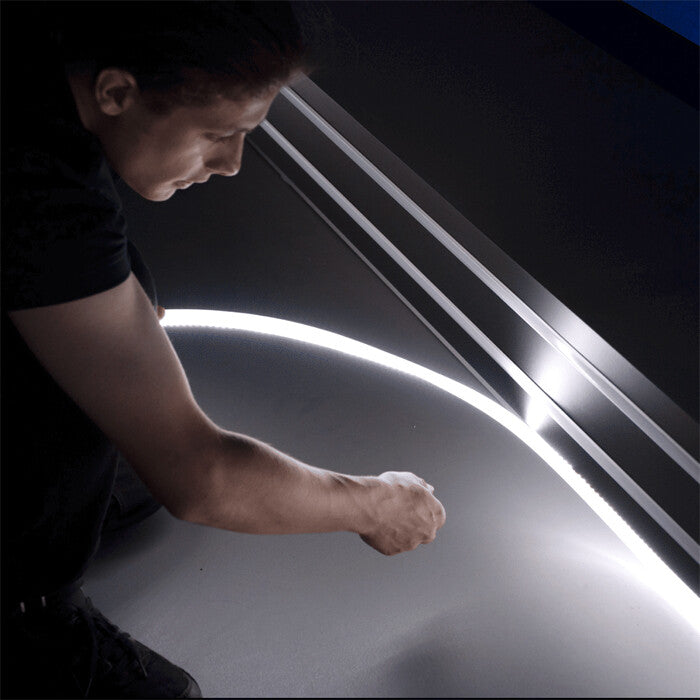 With Sun Dragon, filmmakers can adapt their lighting to any set. Instead of a fixed form, it is a flexible strip of 5-color LED lights. It’s easy to bend Sun Dragon into any shape, carefully controlling reflections and shadows with a precision that’s simply not possible with traditional fixed-shape lighting.