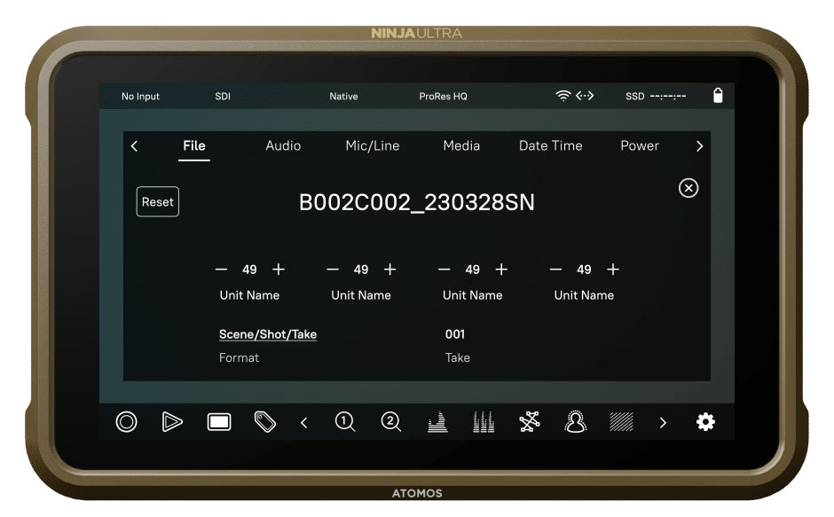 The AtomRemote app for iOS and macOS has an array of controls for Ninja via Atomos Connect. It lets you configure and control your Ninja from up to 15 meters away via Bluetooth LE while you define camera connections, select Gamma/EOTF and adjust Gamut settings. AtomRemote can control playback, select monitoring modes, apply custom 3D LUTs, and view image analysis tools, including exposure and focus. Output controls include options for 4K to HD, LUT preview and HDR output.
