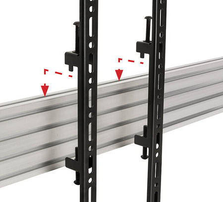 Ideal for single row, multi-screen installations, these interface arms are designed to mount small to medium sized screens in a fixed position along System X horizontal mounting rails. The universal design is compatible with a variety of different screens and allows them to be mounted in either landscape or portrait orientations. Levelling screws on each interface arm provides post installation height adjustment and a mounted depth of 48mm from the wall allows easy access for cables and connectors.