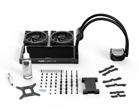 Pure Loop 2 FX 240mm is the very high-performing and silent All-in-One water cooling unit with impressive ARGB illumination. Its black design with ARGB illumination makes Pure Loop 2 FX 240mm a highlight in any case. The newly built PWM pump with increased performance offers a silent operation. Having an included coolant bottle in the scope of delivery, Pure Loop 2 FX 240mm underlines its claim to be the first choice for design-orientated users.