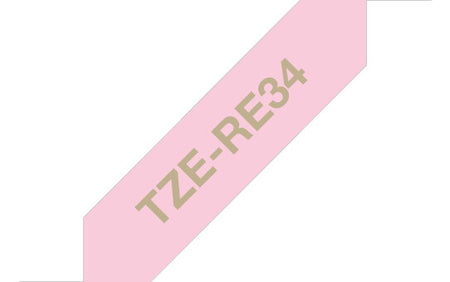 With the TZe-RE34 you can enjoy fast and reliable output, as well as a sharp and professional standard of printing. The beautiful Gold on Pink Brother TZe-RE34 labelling tape is guaranteed to provide you with quality labels.