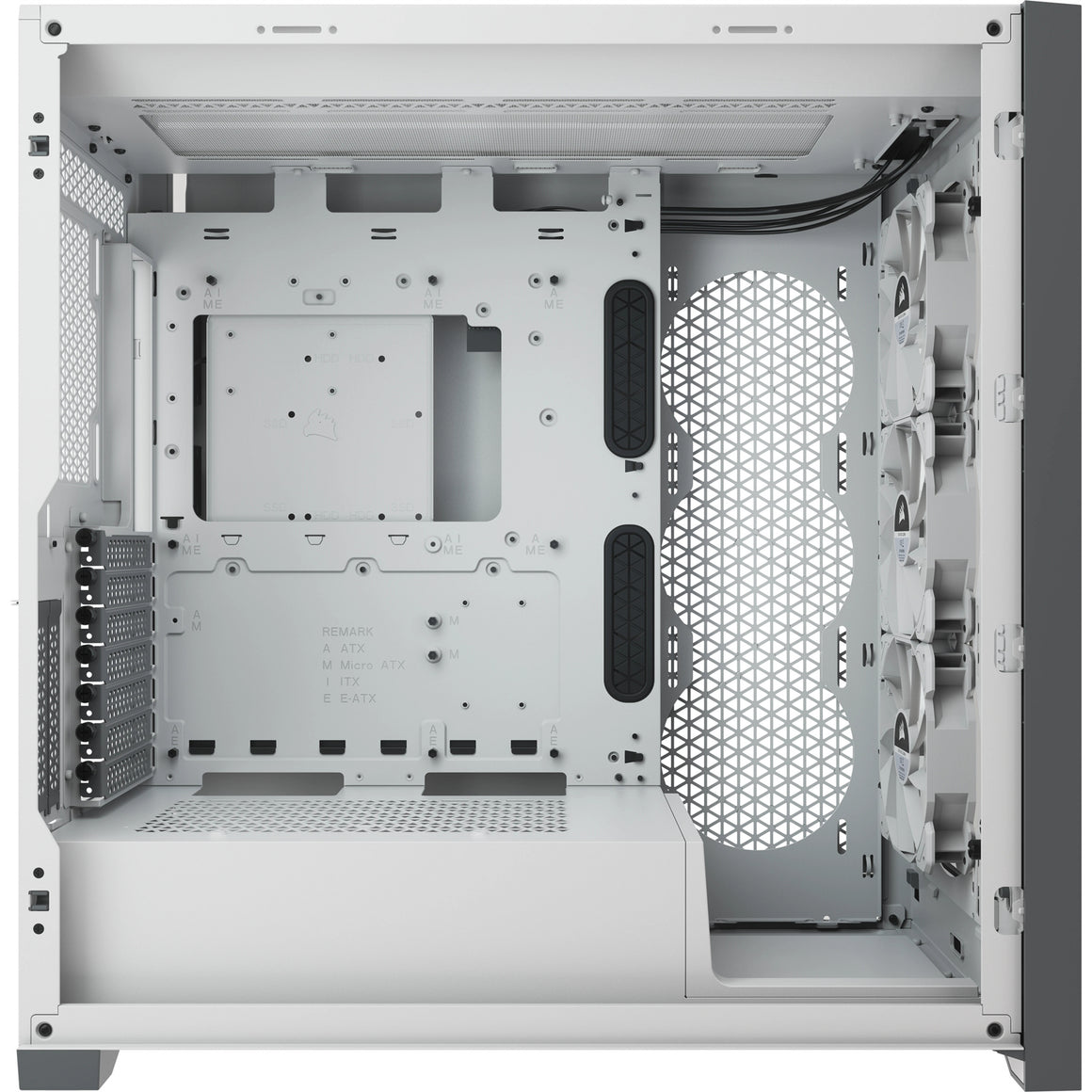 Maximum Cooling Potential: A spacious interior fits up to 10x 120mm or 4x 140mm cooling fans, along with multiple radiators including up to a 360mm in front and a 360mm push/pull in the roof.