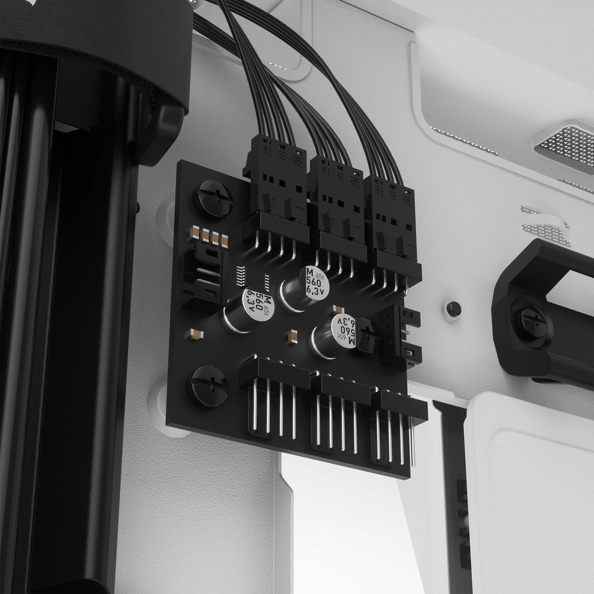 A PWM fan repeater controls the included fans, with connections for up to six in total. Reduce fan speed when you want to keep your system quiet, or increase when you want to push its performance, all from a single 4-pin PWM header on your motherboard.