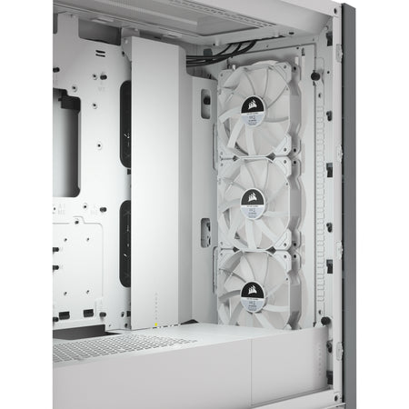 Equipped with three CORSAIR SP RGB ELITE 120mm fans featuring AirGuide technology with anti-vortex vanes to concentrate airflow and enhance cooling.