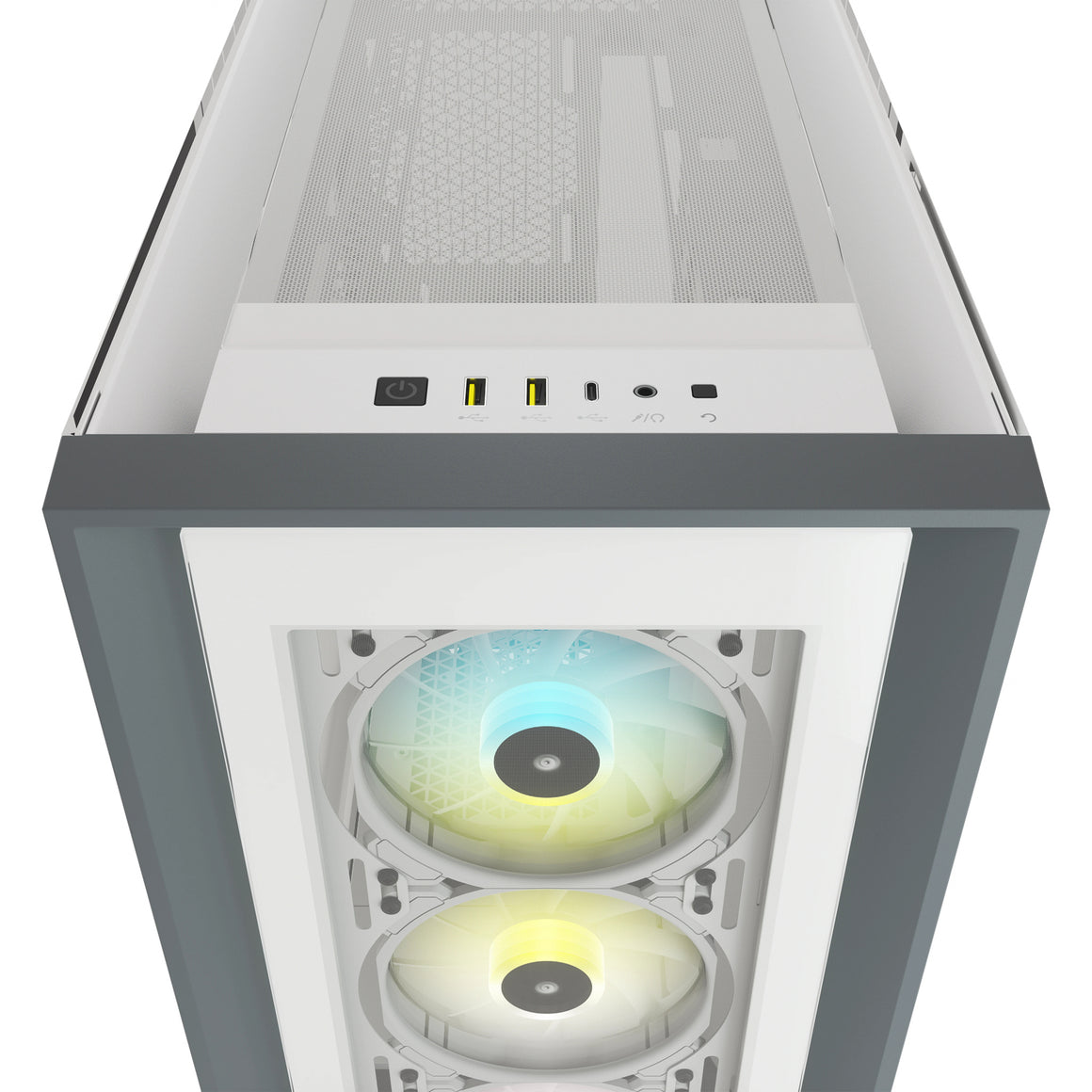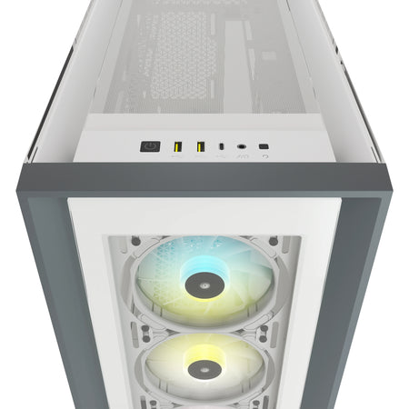 The CORSAIR iCUE 5000X RGB is a mid-tower ATX case that shows off your PC, and not its cables. Four stunning tempered glass panels and three included CORSAIR SP RGB ELITE fans put your PC on display.