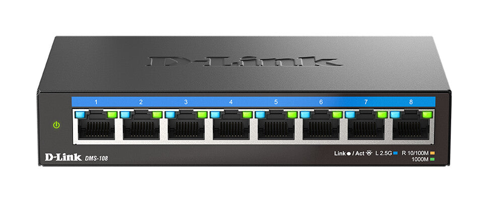The 8-Port 2.5G Multi-Gigabit Desktop Switch with eight 2.5 Gigabit ports provide a quick and easy way to upgrade your network to eliminate bottlenecks to maximise performance and throughput.