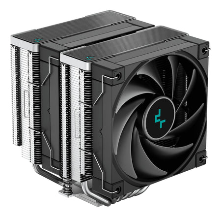 Achieve dominant cooling and silent efficiency with the DeepCool AK620 High Performance CPU Cooler equipped with six copper heat pipes stacked with a dense dual-tower fin array and two 120 FDB fans.
