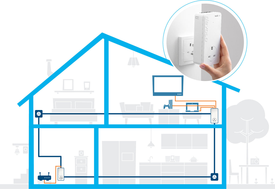 Because there are three Gigabit LAN ports on the Magic 2 LAN triple adapter, one power socket adapter is plenty for going online with the entire multi-media centre in your living room, for example. Signal disruption? – There are scarcely any in a Powerline network (especially compared to a conventional WiFi connection).