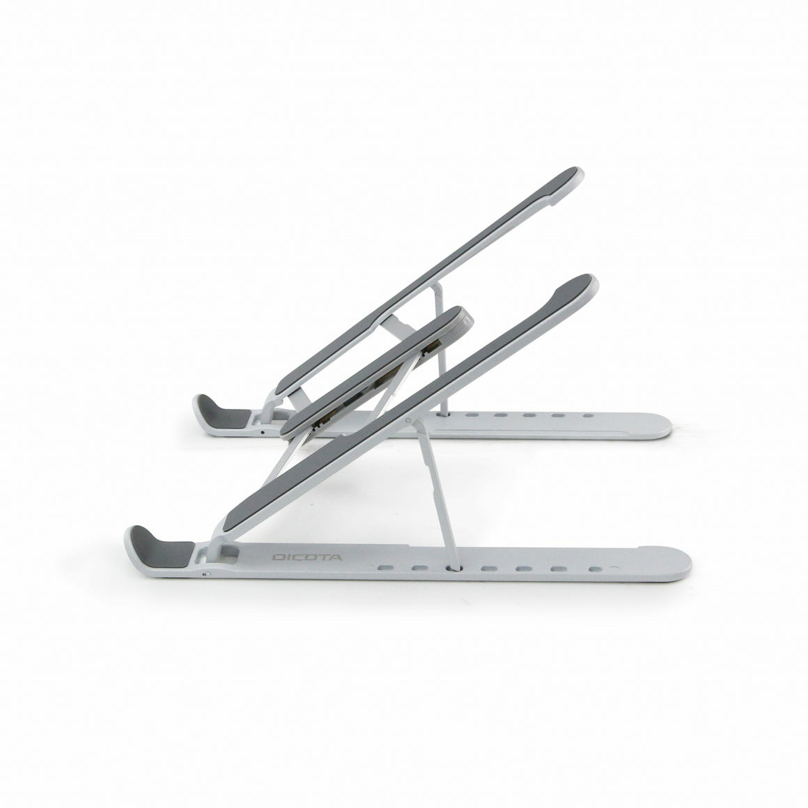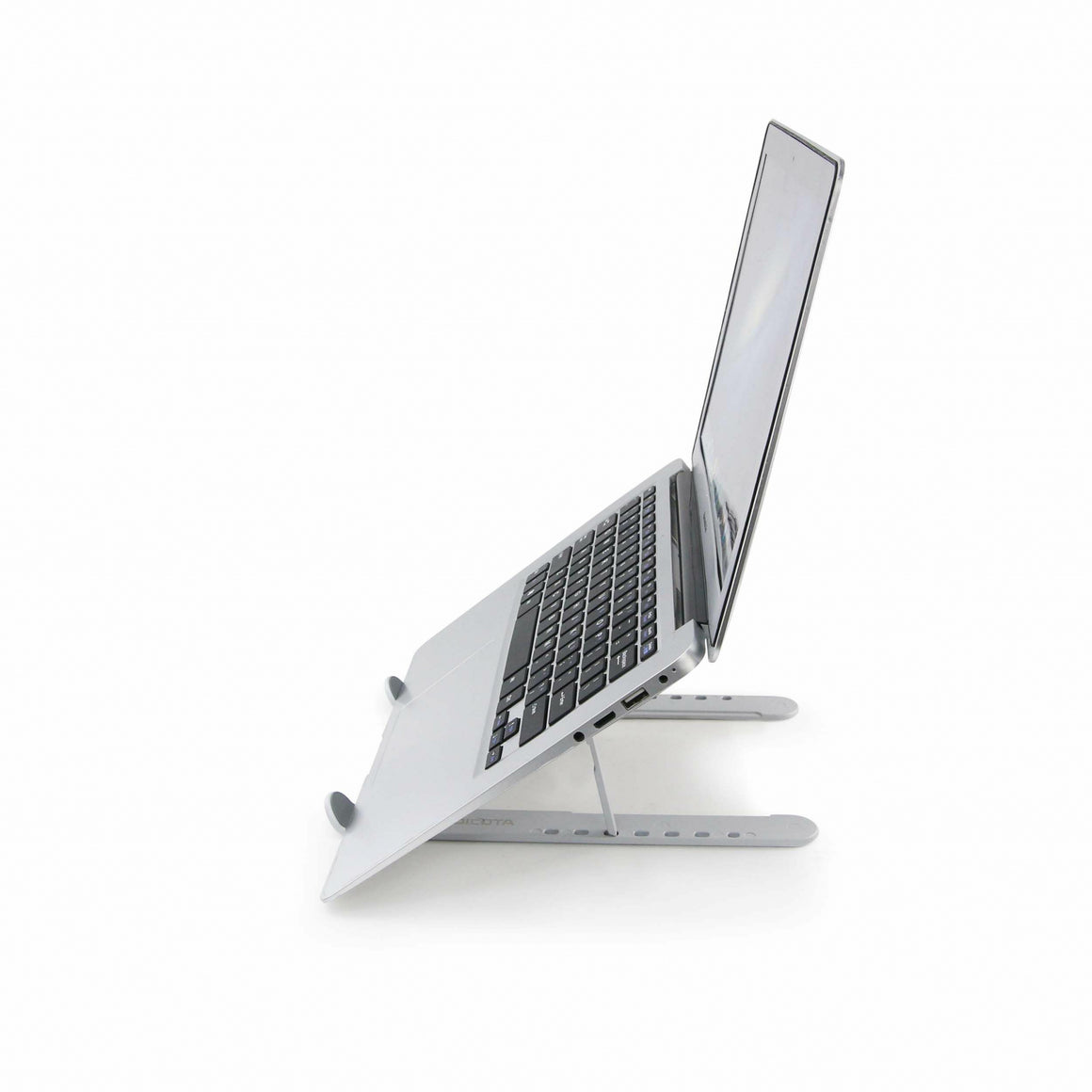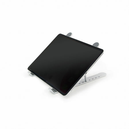 Universally compatible with devices from different manufacturers and devices of different sizes. The stand is made from high-quality aluminium and has heat-reducing properties to prevent the device from over-heating. The silicone pads ensure that the device does not slip off the stand or get scratched. Folds flat, easy to store and transport.