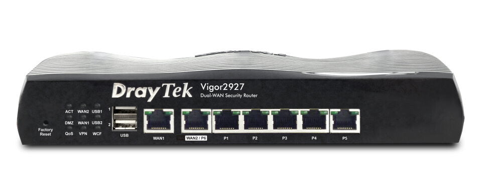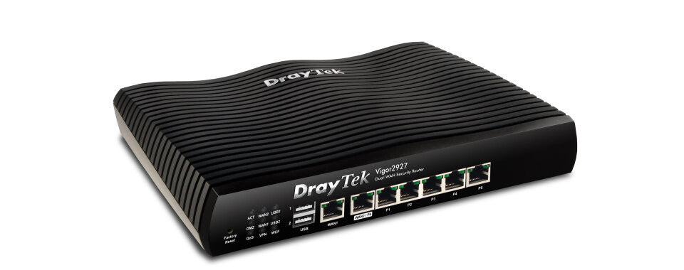 The DrayTek Vigor 2927 - Dual-WAN Load Balancing Firewall VPN router allows you to make the most of FTTP Fibre Broadband with Gigabit WAN throughput, extensive Firewall, Content Filtering, VPN client/server and Quality of Service controls.