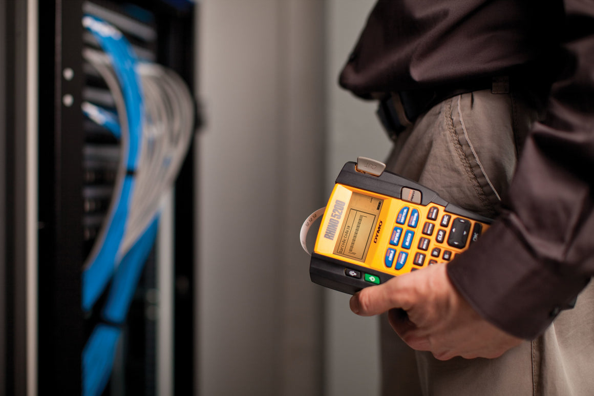 Rugged, versatile and packed with time-saving features, Rhino 5200 meets all ANSI and TIA/EIA-606-A labelling standards – and outperforms industrial labellers costing twice as much. Time is money, and Rhino’s patented one-touch “hot keys” save you both on every job. Press one “hot key” to automatically size, space and format text for perfect patch panel labels – then press another to print matching cable flags or face plate tabs, without retyping! It’s just as easy to print module and fixed-length labels, horizontal and vertical wire wraps, terminal and 110 blocks and much more. Print Code 39 and 128 barcodes for simple asset management. Automatically print single- and double-character incremental labels. Avoid repeated keystrokes with last-label recall and memory for 100 commonly used labels. Choose from 100+ preprogrammed industry symbols, fractions and punctuation marks. And get smart on-screen alerts that prevent mistakes (and wasted labels). Rhino 5200 prints heat-, chemical- and UV-resistant flexible nylon, permanent polyester and vinyl labels with industrial-strength adhesives, as well as heat-shrink tubes and non-adhesive labels. And it’s tough, with a no-slip grip and an integrated rubber bumper that cushions falls and accidents. Run it on 6 AA alkaline batteries (not included) – or on an optional, quick-charging lithium-ion battery that keeps going when other labellers run out of juice. Package includes Rhino 5200 labeller, 19mm (3/4”) white flexible nylon label cartridge, User Manual (on CD-ROM) and Quick Reference Guide.