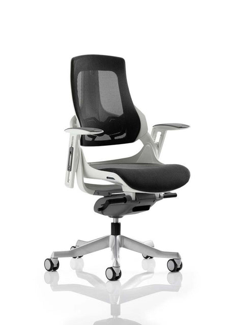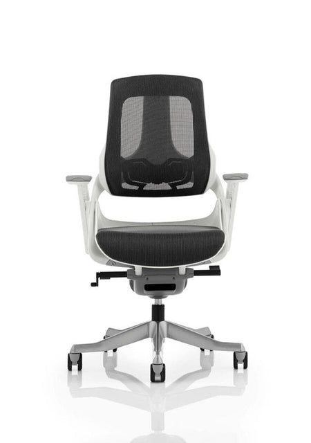 Boldly going where no chair has gone before. The Zure takes you to a new comfort destination. Our unique range of this distinctive, uber stylish posture perfect seating solution has it all. There are fine mesh, fully upholstered, partly upholstered and stunning flexible elastomer options. The seat and backrest are carefully contoured to provide maximum comfort. The high quality outer skeleton wraps the user in touch point technology. Padded arm rests on the fabric and leather options provide pleasing eye-appeal whilst the elastomer versions have colour coded armrests. The polished aluminium base houses highlighted castor detailing.