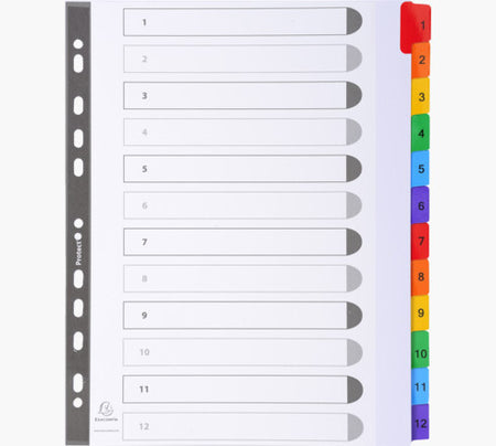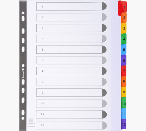 Indices printed 160gsm white cardCard with reinforced colour plastic tabsPrinted index page for identifing contents12 Positions