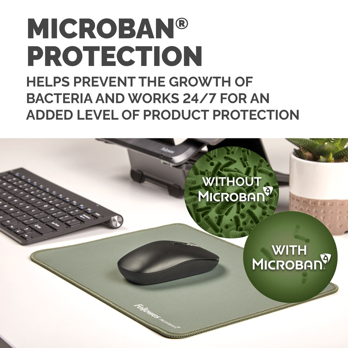 The Fellowes Breyta XL Mousepad is designed to encourage greater movement and reduce small, repetitive motions that can lead to wrist discomfort. Compatible with both optical and laser mice, it not only protects your desktop but also enhances mouse performance. The mousepad features built-in antibacterial technology that works around the clock to provide hygienic protection by reducing the number of germs on the surface. Its non-slip base ensures it stays securely in place throughout the day, while reinforced stitched edges add durability and prevent fraying. Measuring H25 x W280 x L210mm, the Breyta XL mousepad offers ample space for smooth and unrestricted mouse movement. This mouse mat comes with a 5-year warranty and access to top quality customer support to help with any queries you may have.