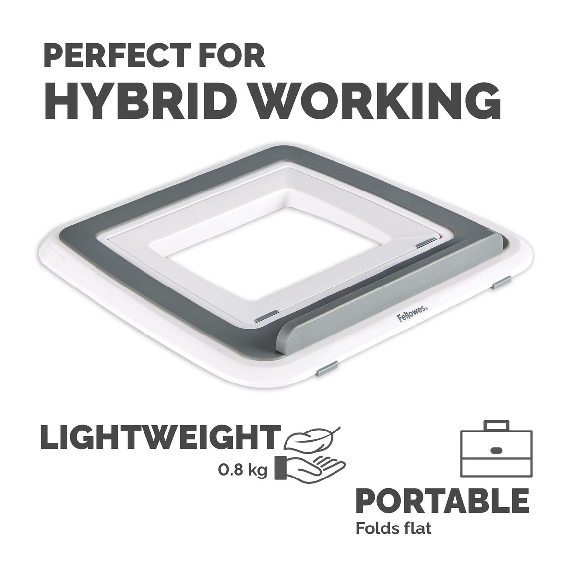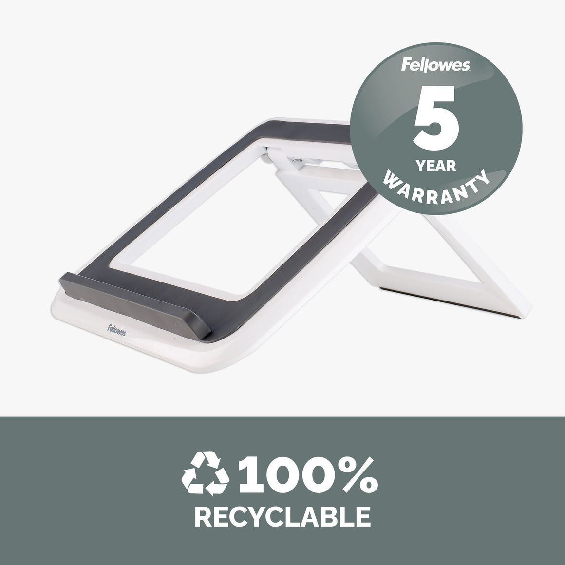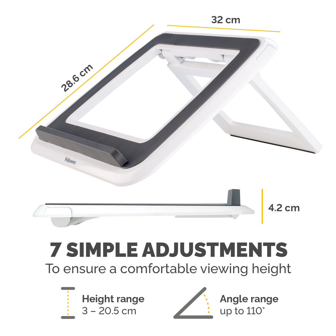Fellowes I-Spire is designed to provide a range of solutions that transform your home office into an inspiring work environment. Work in both style and comfort with the I-Spire Series laptop riser from Fellowes which features a contemporary and stylish design. Whilst offering 7 simple height adjustments, the I spire laptop lift folds flat providing an excellent portable yet ergonomic solution which is perfect for in the office or on the go. Position your screen at a more comfortable viewing height with this I-spire portable laptop stand which features fold out legs to optimise screen positioning on any laptop up to 17". The I-spire laptop holder raises your laptop screen to eye level and positions the screen at a more comfortable viewing height with simple adjustments, relieving the stress placed on your shoulders neck and eyes. The contemporary and clean design of the I-spire laptop holder prevents your laptop from overheating as well as complementing the modern workspace perfectly. I-Spire offers a complete range of home-office comfort solutions. With cushioned supports for your wrist, lumbar supports, foot lifts and monitor stands and laptop stands, you'll be able to work much more comfortably away from your regular office.