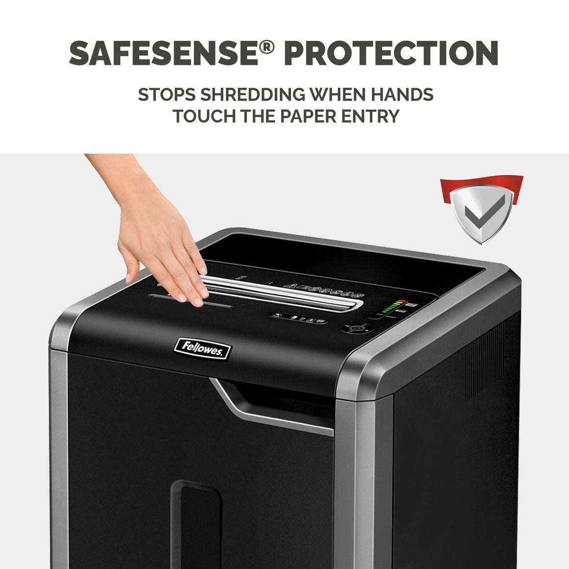 The Powershred 325Ci cross-cut shredder is a premium 100% Jam Proof machine, designed for commercial use in large offices, ideal for placing in copy areas and utility rooms to ensure a shredding best practice can be rolled out throughout the business and all information can be disposed of safely. This shredding machine shreds paper into 4 x 38 mm particles (P-4) as well as shredding staples, paperclips, credit cards and CD/DVD's too with a separate throat for CD/DVD's. The continuous duty motor means that the machine can be used at any given time, regardless of how many people have used it beforehand, ideal for high volume shredding. The advanced 100% Jam Proof System eliminates paper jams and powers through tough jobs, so along with the 24 sheet capacity and 240mm paper entry, you can be sure that the shredding process will be productive and fast. It's Sleep Mode feature will cause the machine to shut off after 2 minutes of inactivity. The large 83 litre pull out bin means you will have to empty the paper waste less frequently saving valuable time. Fellowes shredders are built to last with solid steel cutters, a powerful motor and parts that are engineered to outperform our competitors.