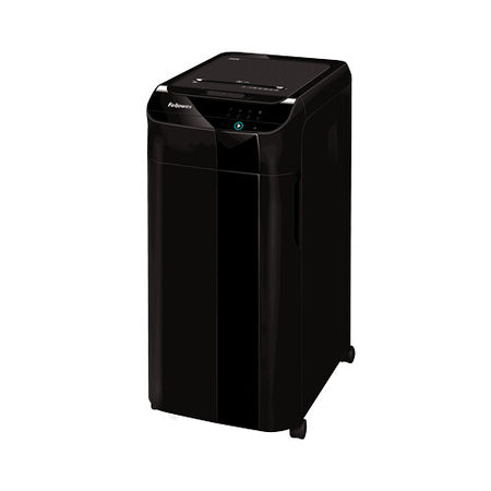 The Fellowes AutoMax 350C auto feed paper shredder brings you truly walk-away, automatic shredding for the office environment. Designed for everyday secure shredding in the office, the 350C can shred an A4 sheet into 4 x 38 mm cross-cut particles and shreds continuously for 45 minutes before needing 30-minutes to cool down. With the ability to shred 350 sheets (70gsm) at a time automatically (or 12 manual) the 350C is the most productive way to protect your privacy. The large 68-Litre pull out bin is ideal for frequent shredding and can hold up to 350 shredded sheets. This shredders powerful cross-cut cutters will not only shred your documents, but can shred staples, paper clips, credit cards and CD/DVD's too! The 350C is built for quieter shredder performance with SilentShred technology, which minimises noise disruption in your workspace. It also offers frustration free shredding, thanks to its Auto Reverse feature that stops the shredder and reverses the paper to prevent jams from occurring. It's Sleep Mode feature will cause the machine to switch to standby mode after 2 minutes of inactivity. Fellowes shredders are built to last with solid steel cutters, a powerful motor and parts that are engineered to outperform our competitors.