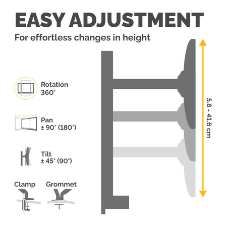 Sitting or standing with bad posture all day using a computer is bad for your health. Leaning forwards or tilting your head up or down not only causes back and neck strain but is also bad for your eyes. The Fellowes Reflex single monitor stand will improve your ergonomic posture and reduce back neck and eye strain. This fully independent monitor mount by Fellowes is adjustable by height and depth to achieve optimum viewing control and a cost effective ergonomic solution. Reduce clutter in your workspace with the Reflex monitor stand which features an intuitive cable management system which helps keep your cables organised. This monitor arm holds monitors weighing up to 8kg. Desk clamp and grommet mount included for secure and easy attachment options. Free up valuable work space for maximum productivity and collaborate with colleagues effortlessly with the Reflex Monitor stand.