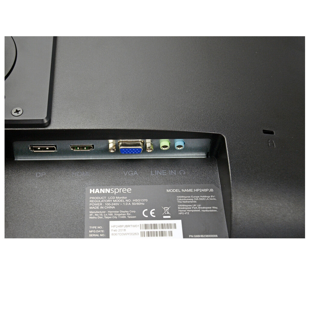 The Professional monitor HANNspree HP248PJB features a 16:9 aspect ratio LED-backlit HS-IPS panel with a 178° ultra-wide view angle that minimizes color shift on both horizontal and vertical planes to ensure quality visuals from almost any direction. It deliveres improved color accuracy plus increased energy efficiency.
