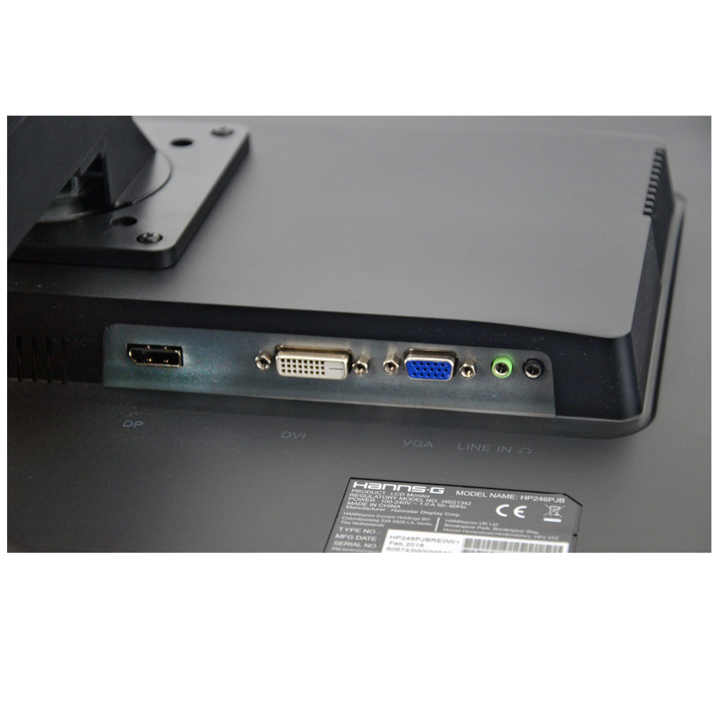 The HANNspree HP246PJB features an extensive array of connectivity and hardware interfaces with advanced connections to maximize the usability. It provides seamless connectivity with your PC and AV equipment with DP, DVI and D-Sub ports.