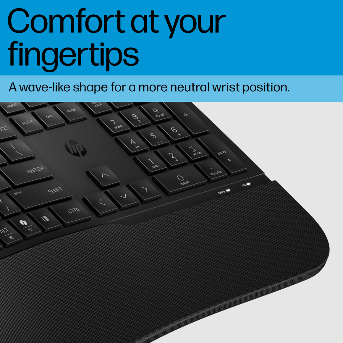 The HP 485 Comfort Wired Keyboard is designed to naturally fit your lifestyle as you type throughout the day. Featuring programmable keys[1], adjustable angle, and multi-OS[2] capability, this keyboard was built for you.