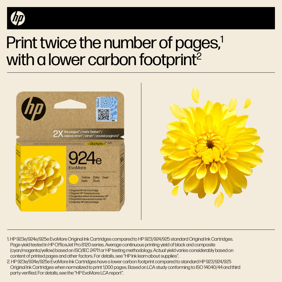 Designed to print two times the pages as standard cartridges,[3] have a lower carbon footprint[2] and be easily recycled,[4] HP EvoMore Original Ink Cartridges combine HP’s legendary performance and quality with added sustainability features.