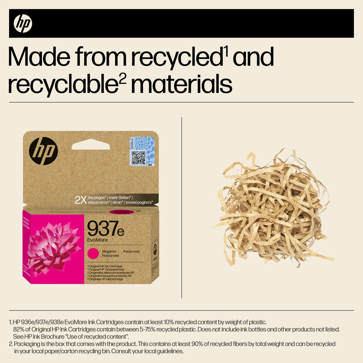 Designed to print two times the pages as standard cartridges,[3] have a lower carbon footprint[2] and be easily recycled,[4] HP EvoMore Original Ink Cartridges combine HP’s legendary performance and quality with added sustainability features.