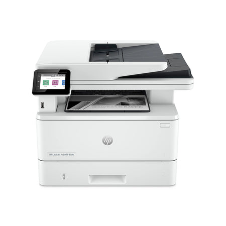 HP LaserJet Pro MFP 4102fdn Printer; Preinstalled HP Black Original LaserJet Toner Cartridge (2,900 pages); Getting Started Guide; Support Flyer; Warranty Guide; Regulatory Flyer; Power cord |