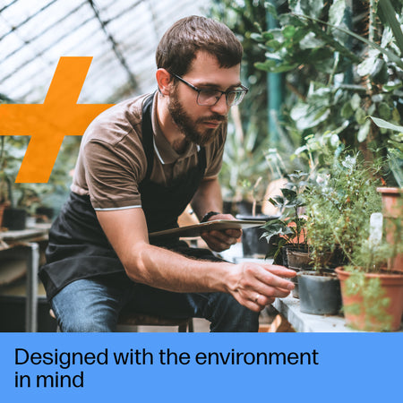 Recyclable through HP Planet Partners; Compatible with Accessibility Accessories; Contains post-consumer recycled plastic |