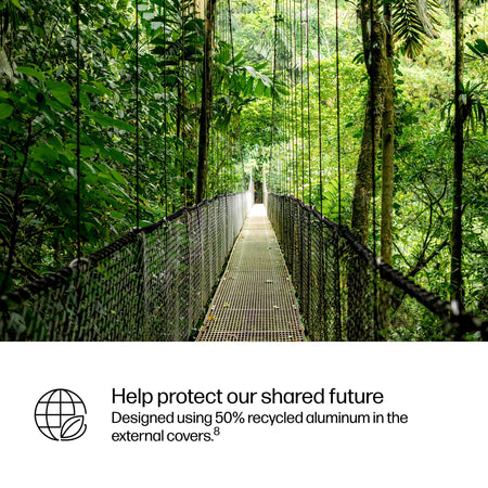 Low halogen; Bulk packaging available; 20% post-consumer recycled plastic; 50% ocean-bound plastic; 50% recycled metal; 100% of HP paper-based packaging is from recycled or certified sustainable sources; Product Carbon Footprint |