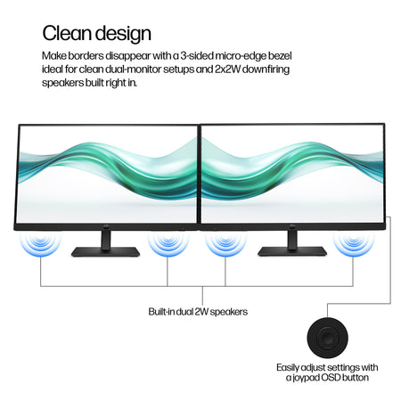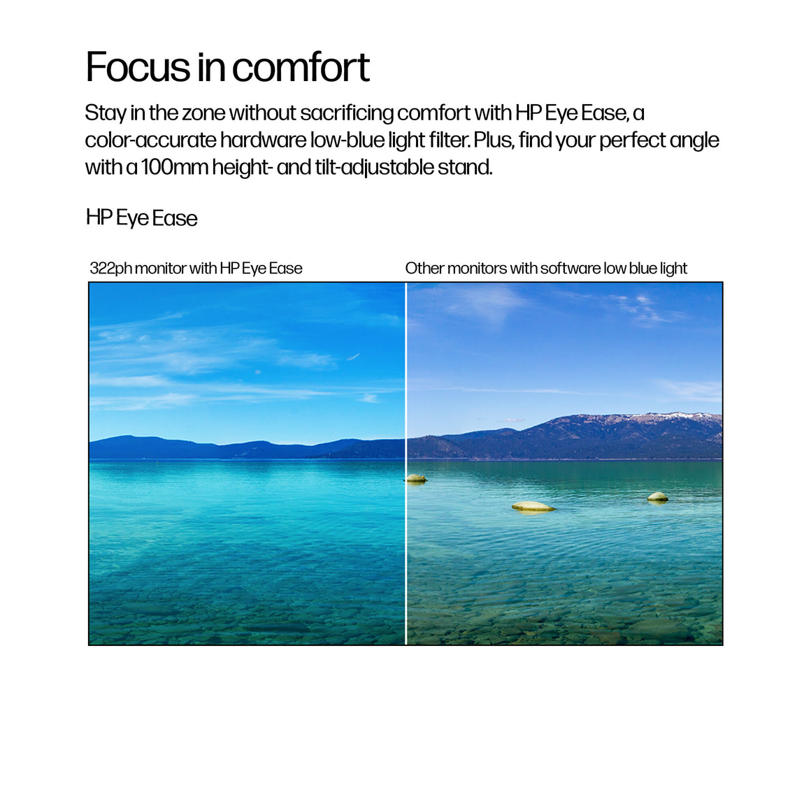 Expand your view in comfort with a spacious, thoughtfully designed 21.5 inches of workspace. Boasting a crisp, smooth screen and a simple yet functional design, this HP Series 3 Pro 21.5" FHD monitor lets you work better all day.