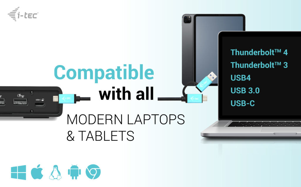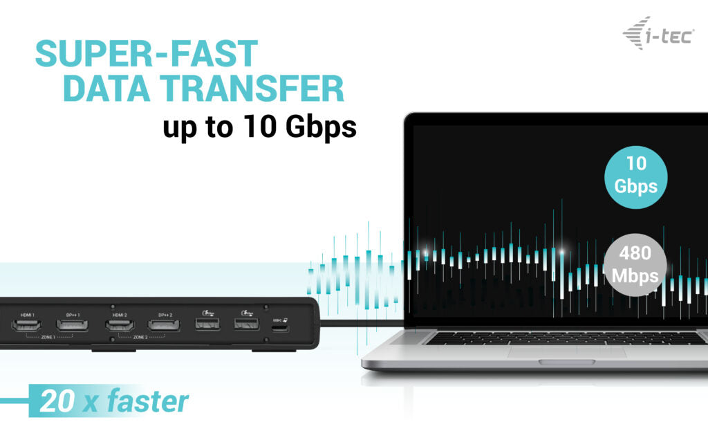 A powerful office docking station supporting super-fast USB Gen 2 ports. Dock supports output to up to two external monitors in up to 4K high resolution. The dock can be used with virtually all notebooks as it supports connection to all common ports: USB 3.0, USB-C and Thunderbolt” 3/4, while supporting all common current operating systems.