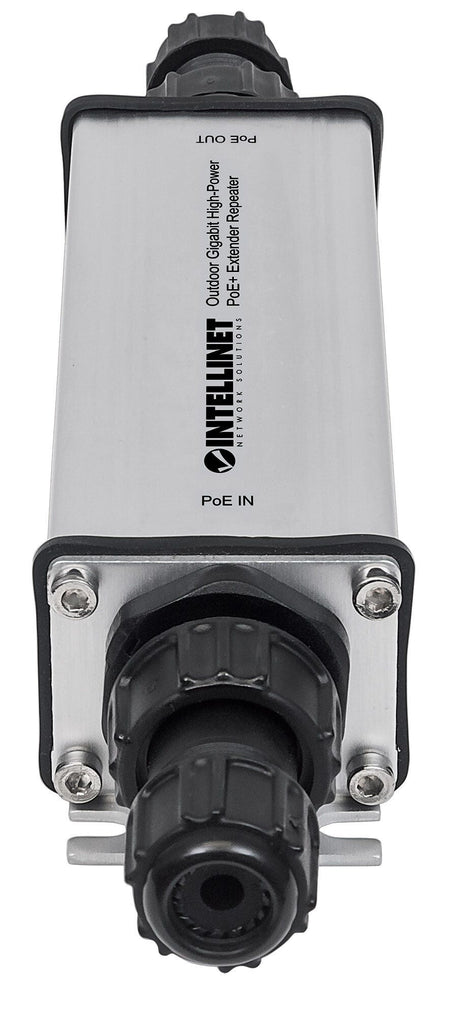 The Intellinet Network Solutions Outdoor Gigabit High-Power PoE+ Extender Repeater (561211) is designed to extend connection distances from a PoE source to an output device up to 100 m (328 ft.) via Cat5e or Cat6 cable. Cover even longer distances by cascading up to five extenders. The PoE+ Extender Repeater does not need an additional power supply, as it draws the power it needs from the PoE input.