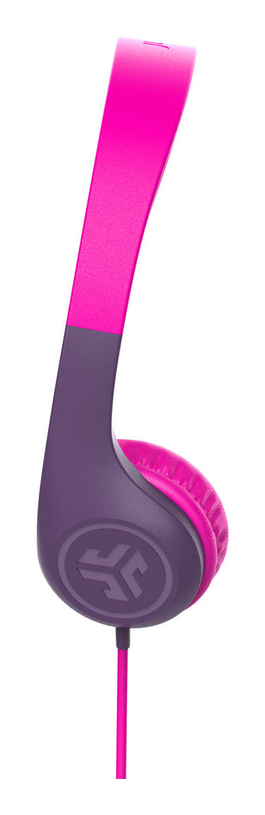 JBuddies Pop Wired Kids Headphones ensure safe listening with volume capped at 85 dB, perfect for kids aged 2+. The lightweight, no-pinch design and soft leatherette ear cushions offer all-day comfort. Compatible with any device using a 3.5mm cable and backed by a lifetime warranty, these headphones make listening safe, comfy, and reliable!