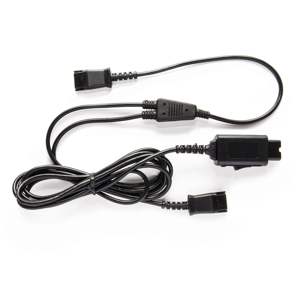 Useful training lead with 2 QD connectors which allows a supervisor to join the call if needed by simply unmuting their microphone via the rocker switch on the supervisor QD connector.