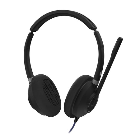 The Icon-120 headset delivers premium audio performance with all-day comfort. Its dual speakers provide crisp stereo sound, while the soft 75mm leatherette ear cushions and padded adjustable headband ensure a comfortable fit. Packaged with a felt carry pouch and Quick Start Guide, the Icon-120 is the ideal headset for hybrid professionals seeking performance, comfort, and reliability.