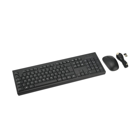 The KM270 EQ Rechargeable Desktop Set is a value-for-money wireless keyboard and mouse combination featuring a minimum of 60% post-consumer recycled content of the total plastic components*. Compatible with both Windows and macOS, it offers convenient wireless 2.4GHz connectivity secured with AES 128-bit encryption and Bluetooth® connection options. The full size ANSI/ISO keyboard includes a numeric keypad and a dedicated Copilot AI assistant key**. Convenient LED indicators show visual confirmation of battery life, num lock, caps lock, pairing and scroll lock. A spill-proof design protects the keyboard electronics from accidental spills from coffee, water and other liquids. The quiet-click mouse is significantly quieter than a standard mouse, reducing noise in busy workplaces and accommodates both left and right-handed users. Wipe down protection certified. Includes 3-year limited warranty. *Excludes PCB assembly, rechargeable battery, 2.4GHz dongle and charging cable.**Windows only.