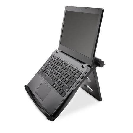The SmartFit™ Easy Riser™ EQ Laptop Cooling Stand enhances ergonomic comfort and promotes airflow to improve battery performance. The proprietary SmartFit™ System allows you to customise the height and angle of your laptop screen to reduce back, neck and eye strain. Accommodating 12-17” laptops, the riser includes padded inserts to ensure a secure fit and folds flat for travel. The plastic used in the SmartFit™ Easy Riser™ EQ Laptop Cooling Stand is composed of 50% post-consumer content (PCR).