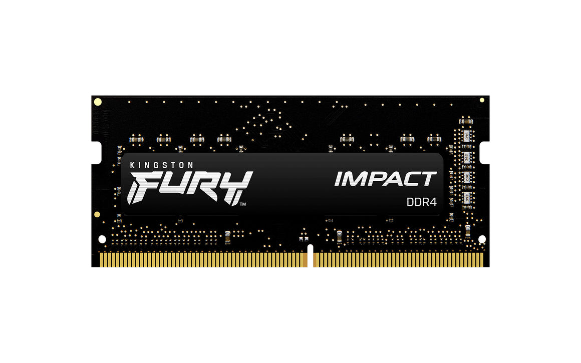 Get your notebook or small-form-factor machine fully equipped with Kingston FURY™ Impact DDR4 SODIMM and minimise system lag. Ready for AMD Ryzen™, Intel® XMP-ready and XMP Certified in kit capacities of up to 64GB, FURY Impact DDR4 features Kingston’s innovative Plug N Play* overclocking technology, which automatically engages the factory preset speed and latency timings without having to change any settings in the BIOS. Designed to run cool, quiet and efficiently at only 1.2V, these sleek black modules provide a hassle-free boost to your system’s performance