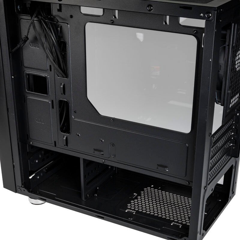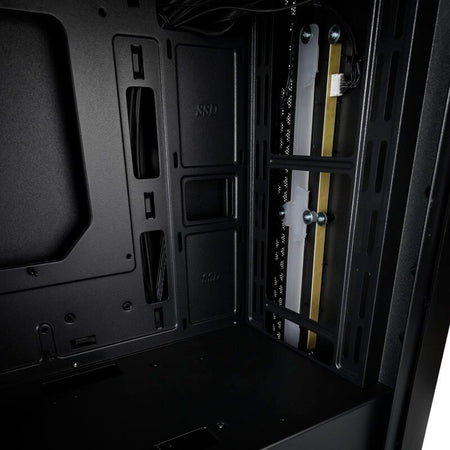 Under the PSU shroud, there is an HDD cage that can accommodate either two 3.5" or 2.5" drives. In the interior next to the motherboard, users are free to install two additional 2.5-inch drives. The result of Kolink’s efforts here is the epic K6: a case that has been designed from the ground up to make powerful yet attractive and compact gaming setups a reality.