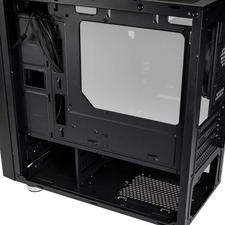 Inside has a space for a Micro-ATX- or a Mini-ITX motherboard. Graphics cards may be 350 millimeters long, and CPU coolers up to 162 mm tall - which is more than enough space for most common models. For cable management, there are cable guides located on the tray and in the power supply cover along with plenty of space between the motherboard tray and the right side panel. Power supplies may be up to 170 millimeters long.