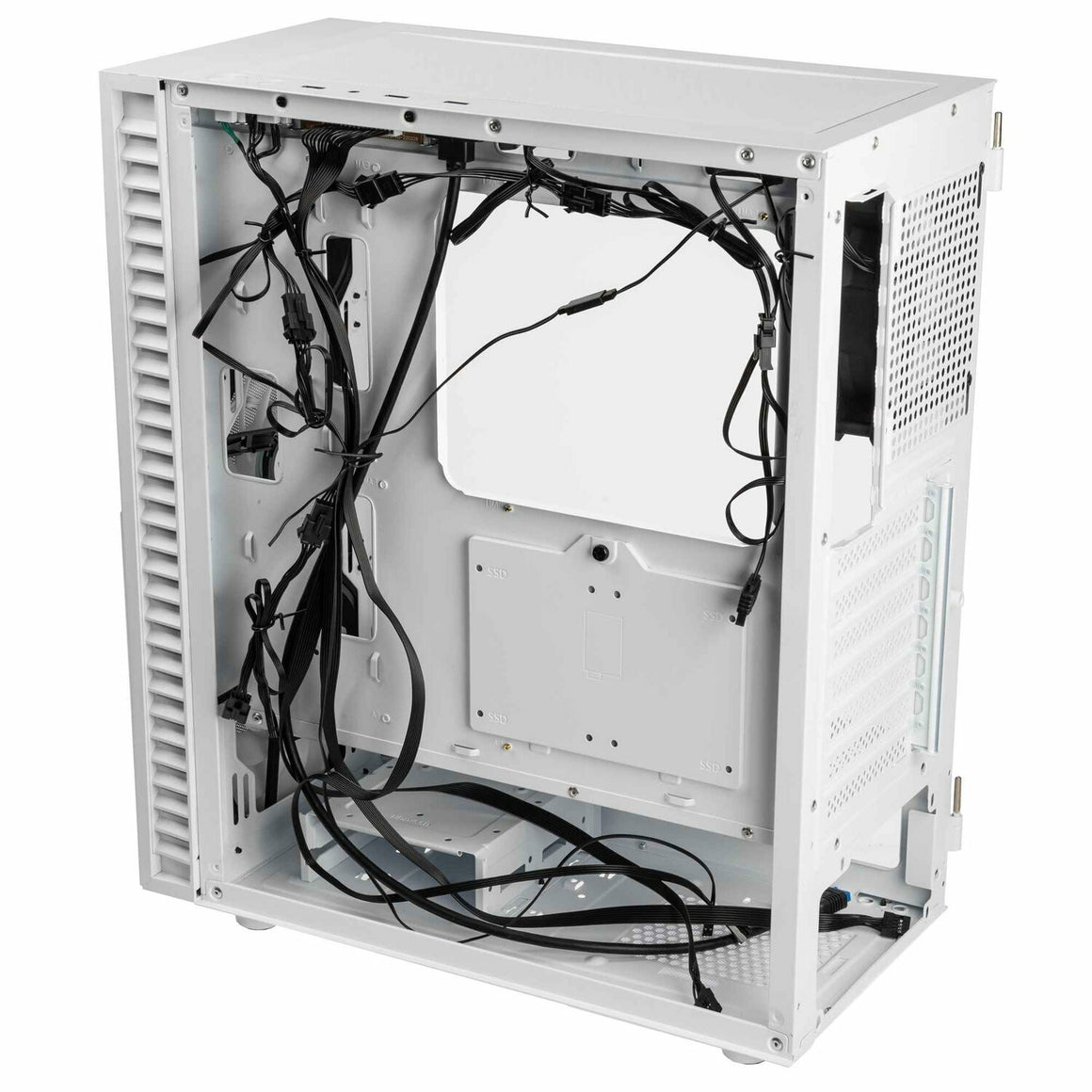 Within the interior, the Kolink Observatory HF Glass ARGB has integrated cable routing. The motherboard backplate features intelligently placed passthroughs that make managing your cables a breeze and keep your gaming PC looking tidy.