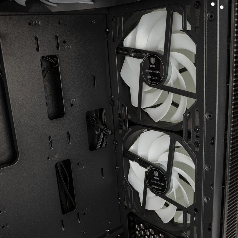 To keep your gaming PC at optimum temperature, the Kolink Observatory MX Glass can support both air and water-cooling hardware. There are five Kolink Umbra ARGB fans pre-installed across the chassis, to bolster the air flowing through the mesh panelling. The front features two 140mm fans. Upon the top, there are two 120mm models, and the rear holds a singular 120mm fan, too.