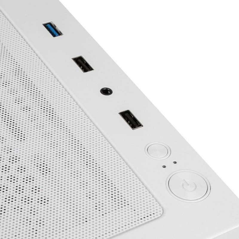 This is the Mesh model in black and white. The front panel has a mesh design, to ensure ample airflow. Keeping the aesthetic sleek, the dedicated PSU shroud is formed with solid steel panelling. As the black and white model, the exterior and interior are black, with the shroud offset in white. Thus, creating a bold effect.