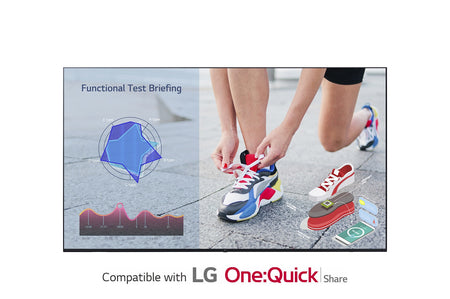 LG One:Quick Share is a wireless screen sharing solution available through the UL3J series, USB transmission unit, and its app. You can simply share personal PC screen to the display with it's USB dongle button and embedded Wi-Fi, and can adjust the basic setting values (volume, picture mode, auto bright, etc.) of the connected display without a remote control. Also, the Office Meeting Mode helps you to display the agenda, note before the meeting starts.